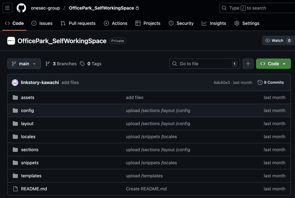 ・gitでリポジトリを作成し、shopifyのテーマテンプレートをアップロードする。