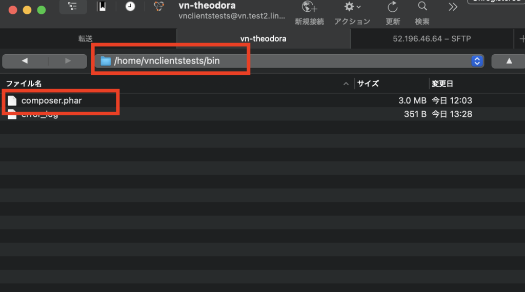 ※「/home/vnclientstests/bin/」は上記でcomposerが設置されているフォルダ名。