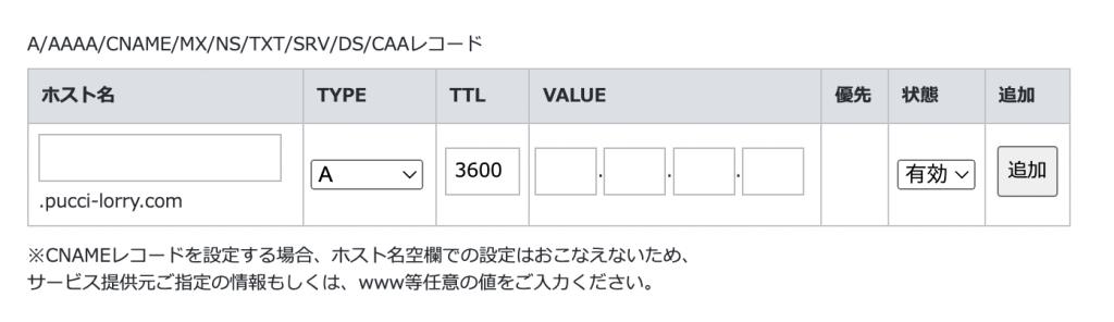 →「www」等サブドメインが必要な場合は、それもAレコードとしてVALUEに登録する。