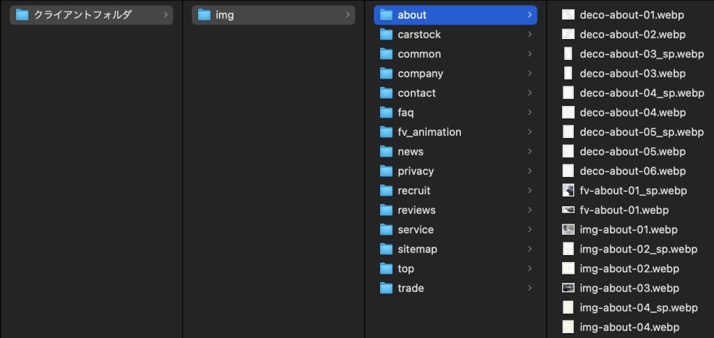 < 記事一覧 トップ デザイン Wiki ルール 画像書き出しルール 画像書き出しルール 投稿日2024年11月8日 更新日2024年11月8日 作成者廣瀬 画像書き出しルールダウンロード ※画像は各ページ毎にフォルダ分けすること ディレクトリ構成例 img ー top ー company ー service